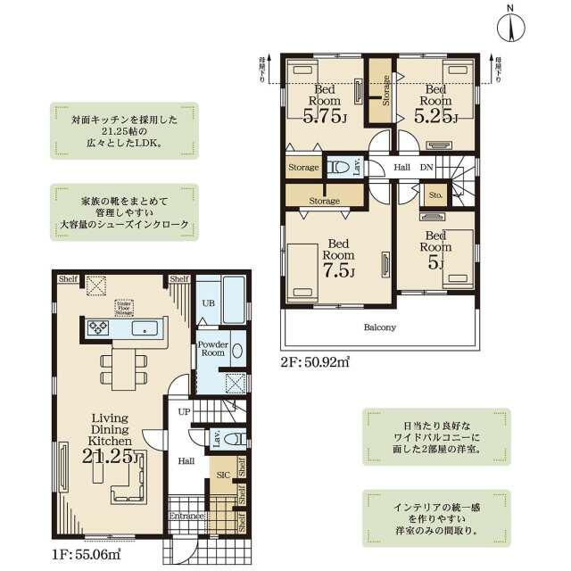 建物面積 | 105.98㎡ | 土地面積 | 118.06㎡ |