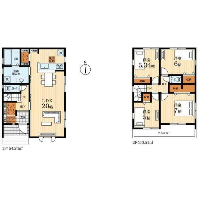 | 間取り(内訳) | 4LDK(洋7/6/5.3/5LDK20) | 建物面積 | 104.75㎡ |